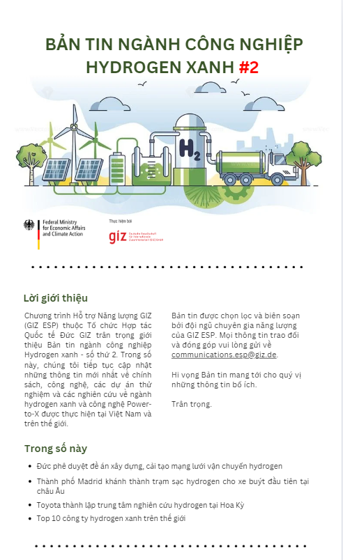 Lĩnh vực 2: Hỗ trợ kỹ thuật cho các dự án thí điểm hydrogen tại Việt Nam thông qua mô hình PPP với các công ty Đức/Châu Âu.