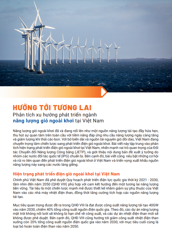 Hướng tới tương lai: Phân tích xu hướng phát triển ngành năng lượng gió ngoài khơi tại Việt Nam 02/2024 Hướng tới tương lai: Phân tích xu hướng phát triển ngành năng lượng gió ngoài khơi tại Việt Nam 02/2024 Dự án ESP Chủ đề #offshorewind #renewableenergy #windenergy Loại tài liệu Technical Publication